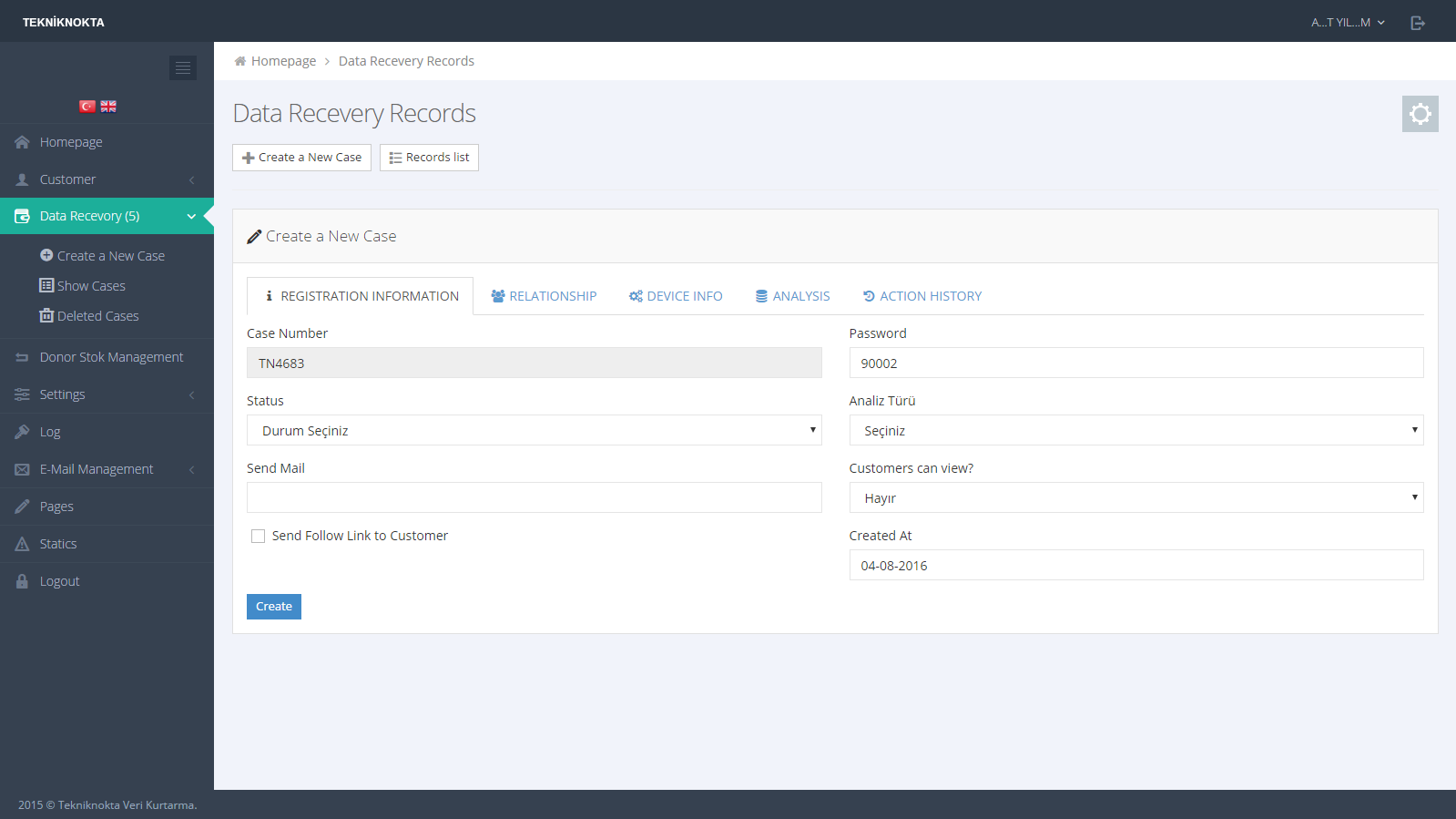 For your customers and all of cases at your recovery lab , you can follow "Managing customer relationships and cases" was written for a CRM system on online web system...Can manage your business and customer convenience, you can provide case tracking through the system ...